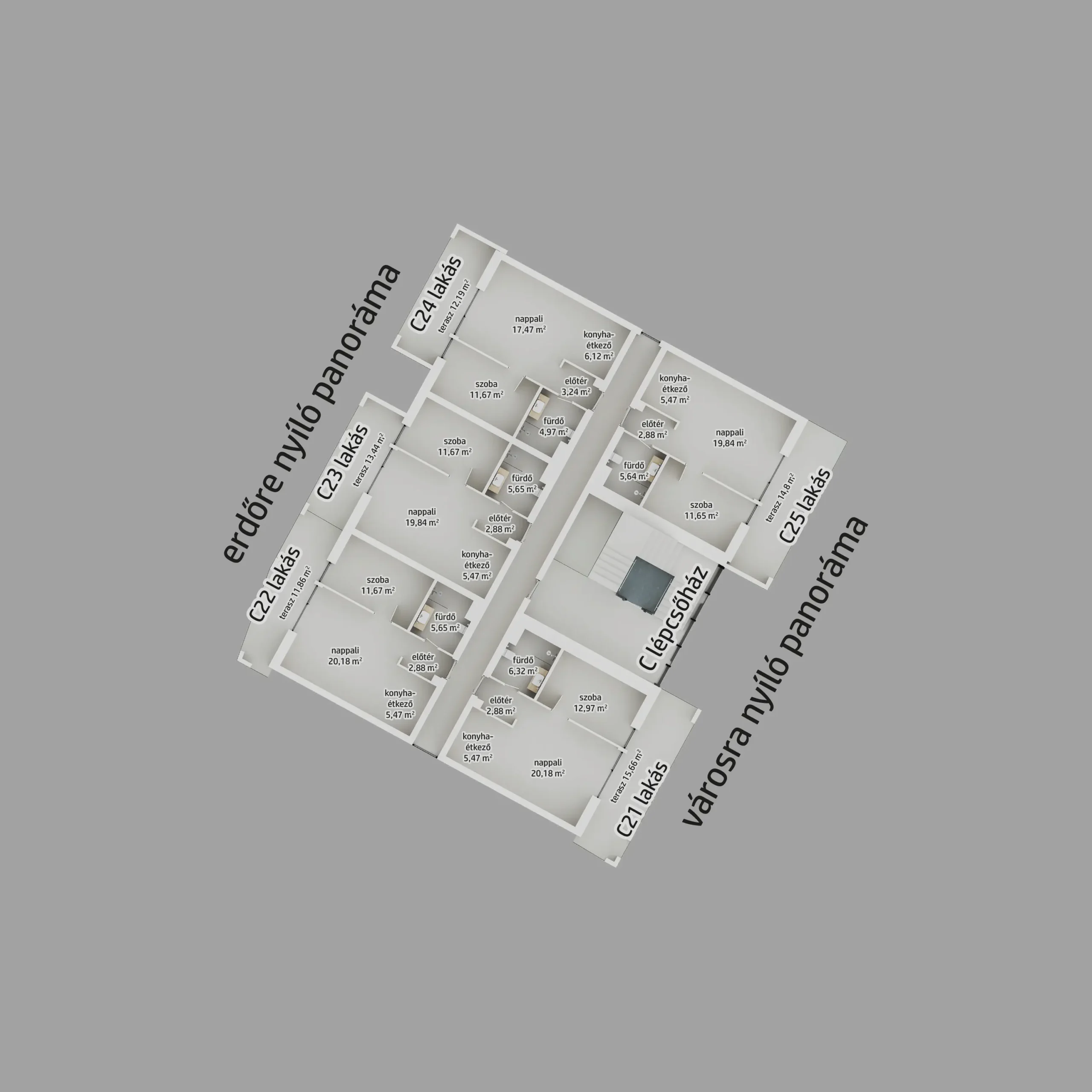 C épület – II. emelet – 22. lakás